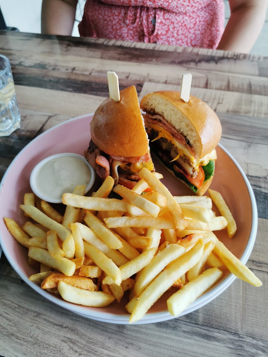 The café's All Day Menu is a glorious assortment of crowd-pleasers. Dive into the Big Breakfast, a bountiful dish that features 2 eggs cooked your way, crispy bacon, hearty baked beans, flavor-packed chorizo, golden hash browns, grilled halloumi, and succulent grilled tomatoes—all beautifully piled on toasted buttered sourdough. Each bite is a symphony of flavors that tells a story of fresh ingredients and culinary care, all for just A$29.90.